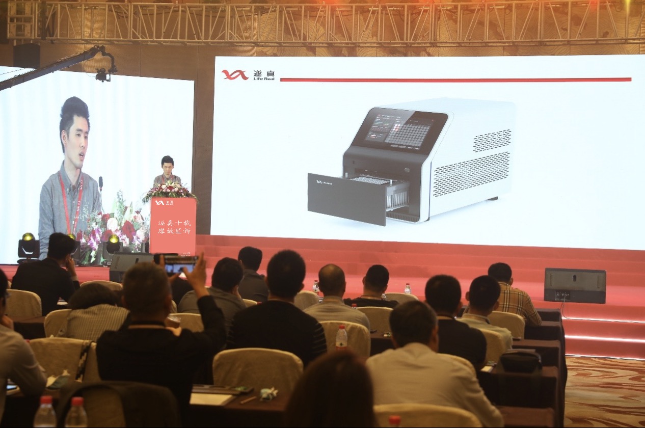 待嘉賓領略過公司的全新面貌之后,趙懷董事長帶領一行人來到十周年慶典現(xiàn)場,參加遂真生物新品發(fā)布會。遂真生物的各部門負責人分別為與會人員展示了其團隊精心打造的最新研發(fā)產(chǎn)品——QuantReady9600實時熒光定量PCR儀、全自動核酸檢測分析系統(tǒng)(AIGS),新一代的樣品前處理系統(tǒng),每一樣產(chǎn)品都飽含了他們?nèi)砍种院愕呐椭腔鄣慕Y晶。